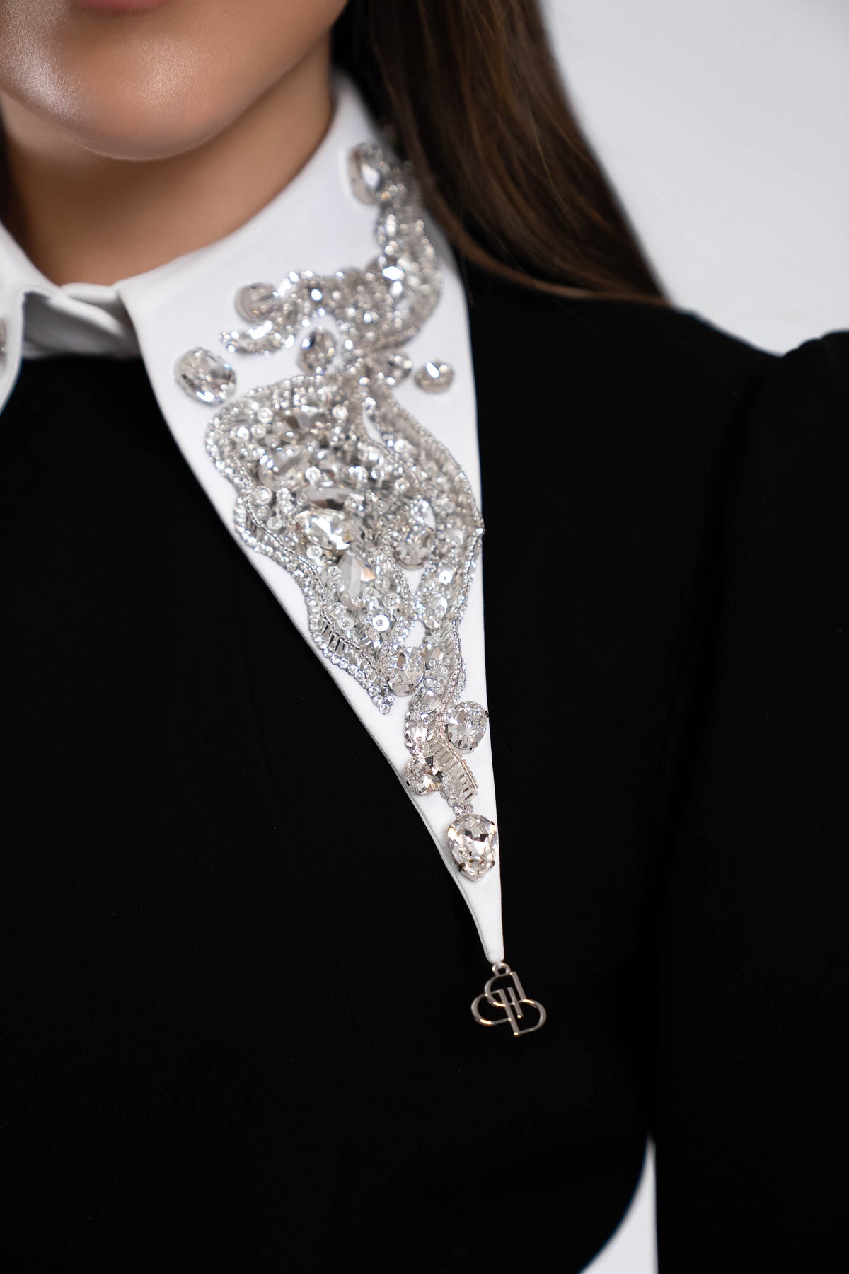 Inspired by the calm beauty of moonlight, this handcrafted collar is made on a luxury white crepe base and adorned with more than 740 crystals. Each detail reflects softness and refined elegance, creating a luminous look that symbolizes purity, grace, and timeless femininity.