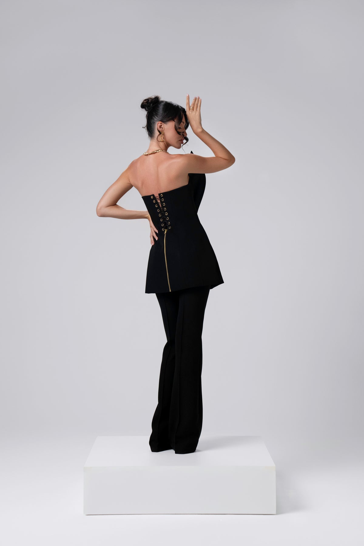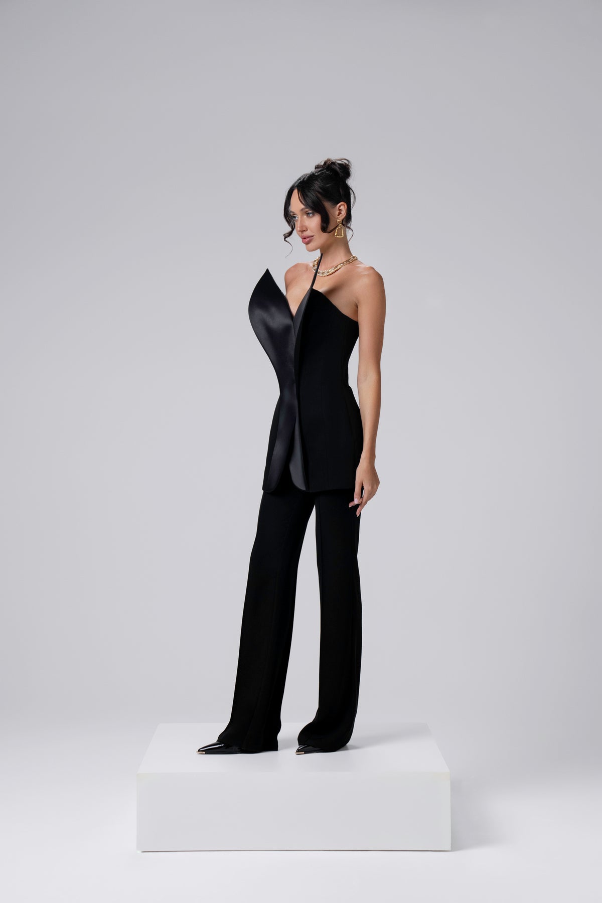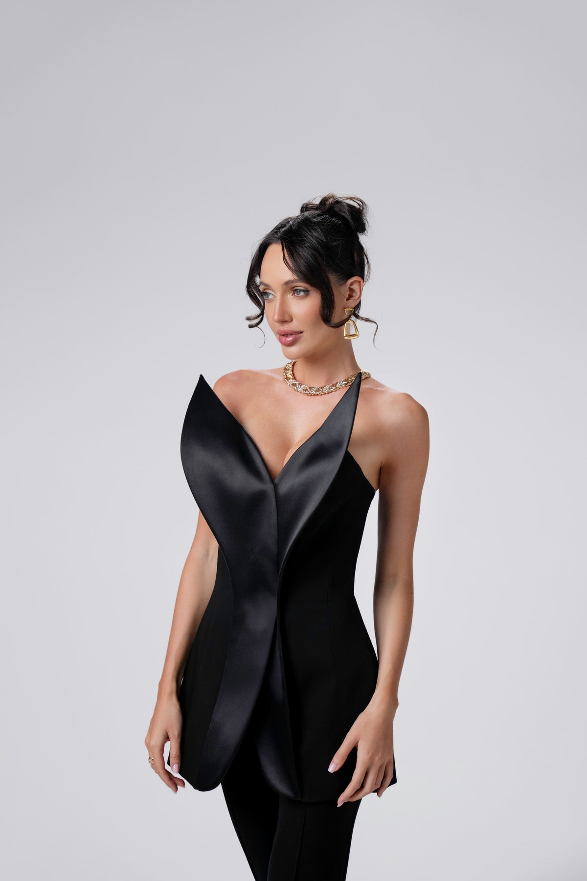 This stunning black corset exudes luxury, with a structured, wing-like design that mimics butterfly wings. Its sleek, elegant silhouette makes it perfect for the confident, sophisticated woman.