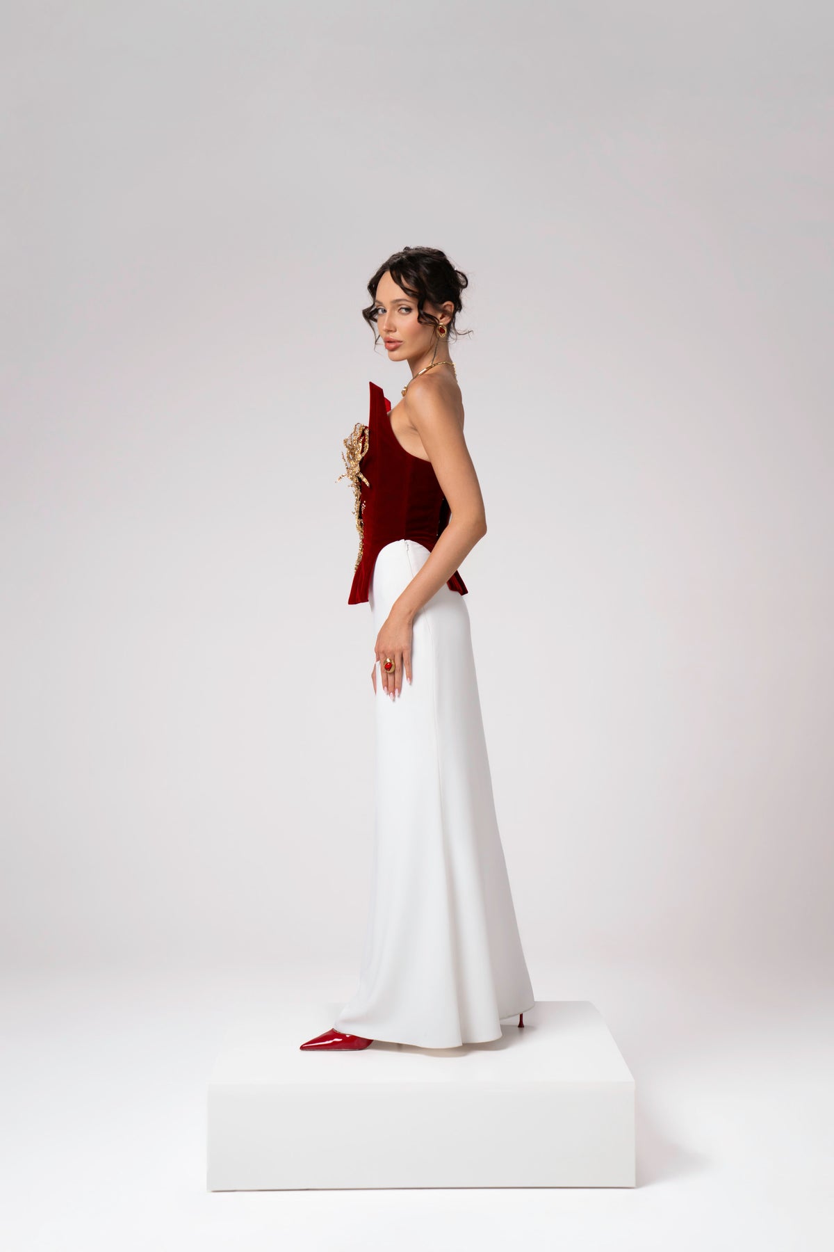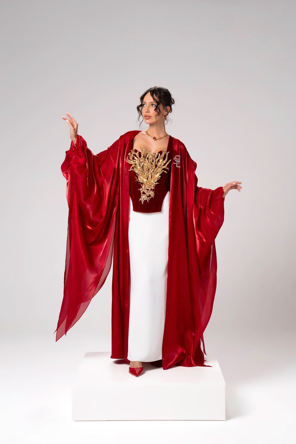 - Professional Care: Due to the detailed craftsmanship and delicate fabrics, crystals, metallic beads and metallic thread, it is advised to seek professional couture garment care service.