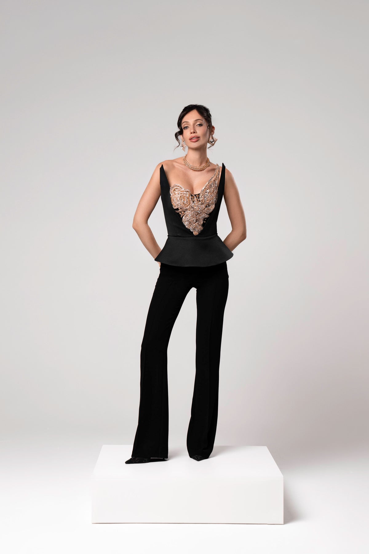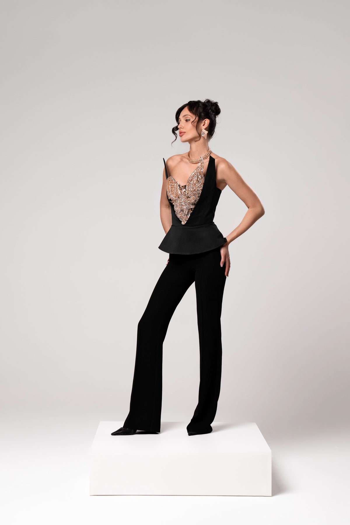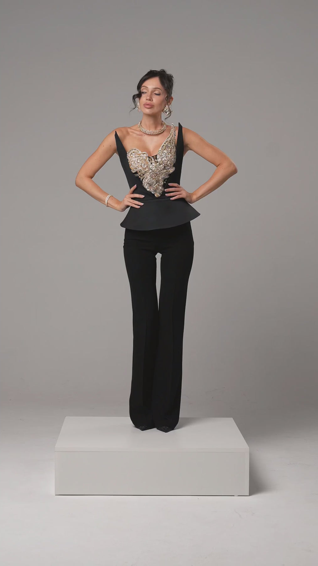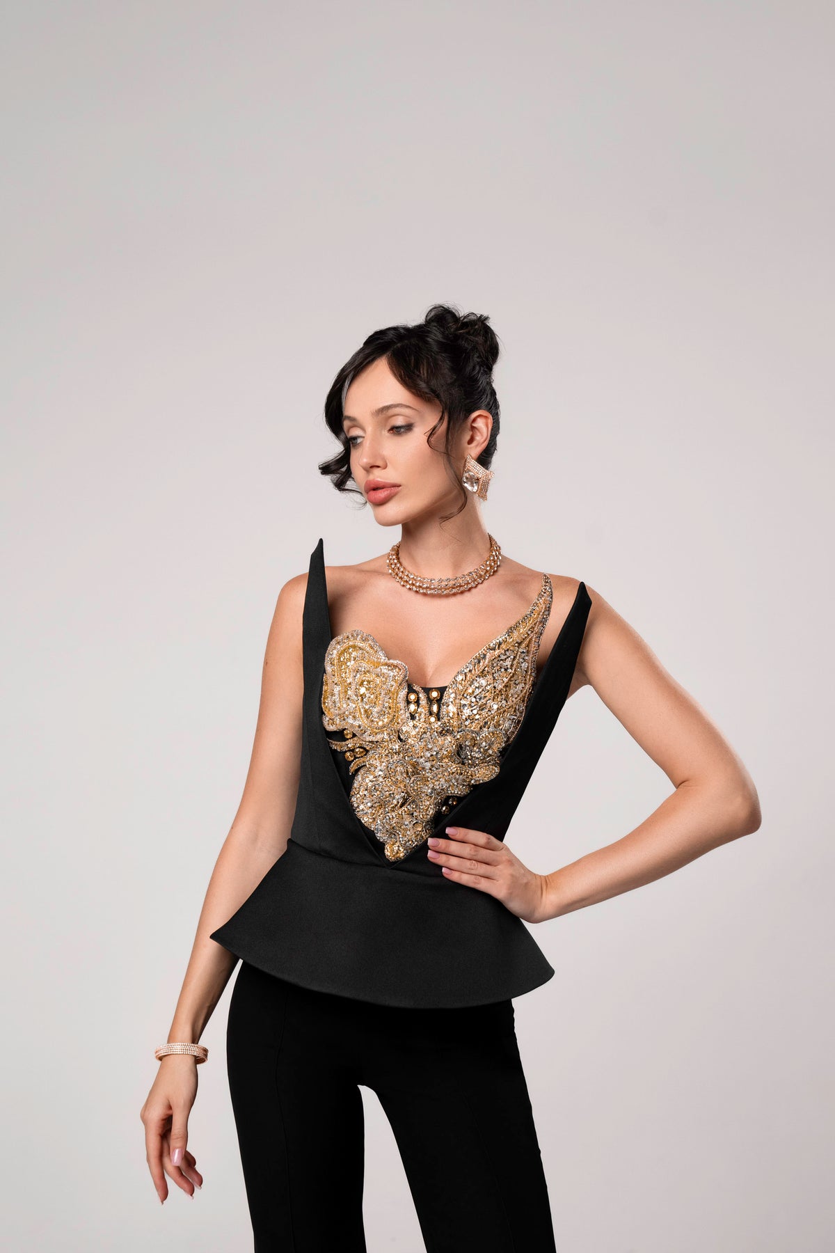 This corset brings elegance to life in the quiet of the night. Made from deep black fabric and decorated with golden and silver embroidery, it shines with rich detail and soft strength. The shape gently frames the body, while the mix of tones adds a unique glow. SOLÈNE is made for the woman who shines with calm confidence — graceful, bold, and unlike anyone else.