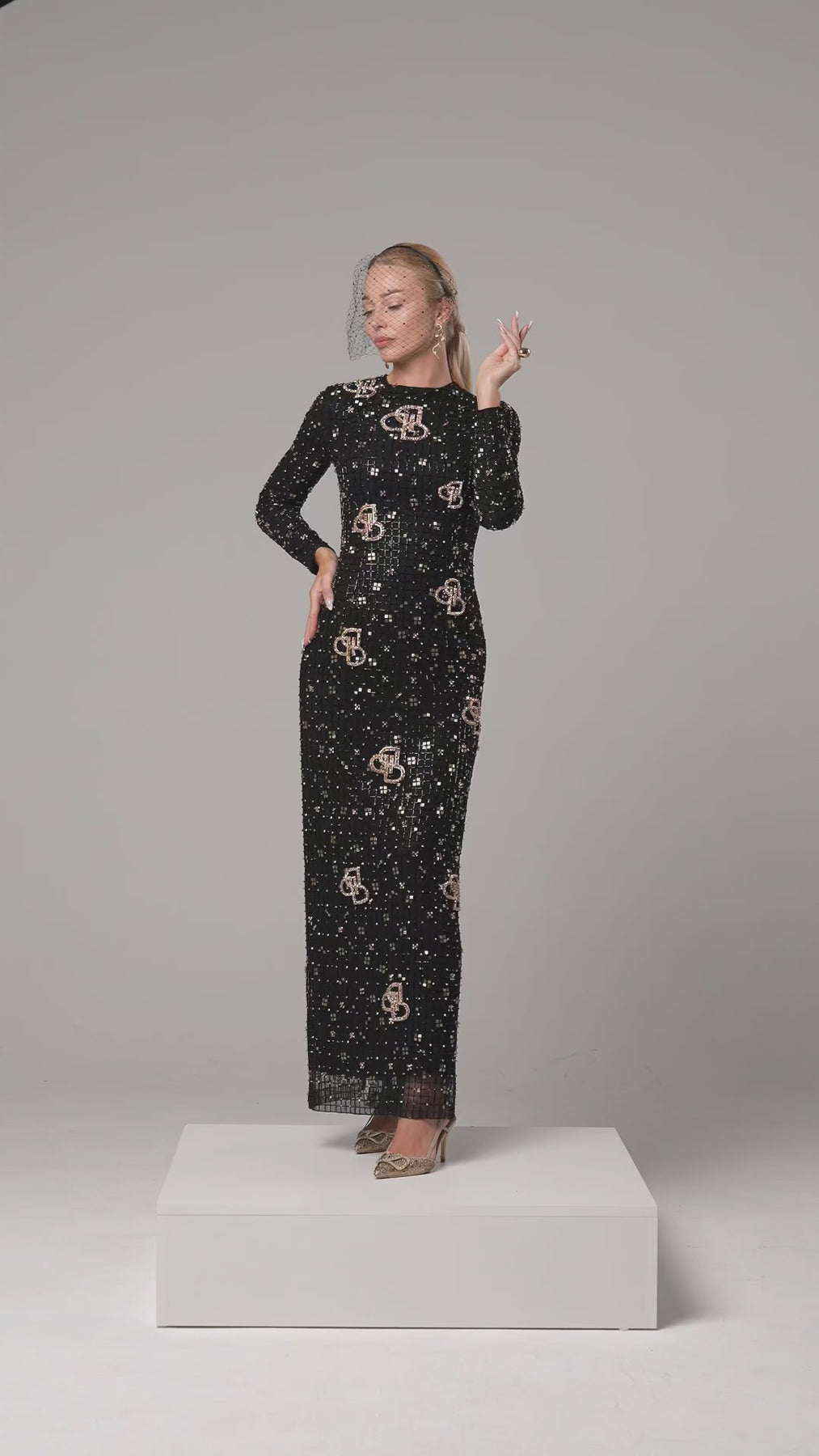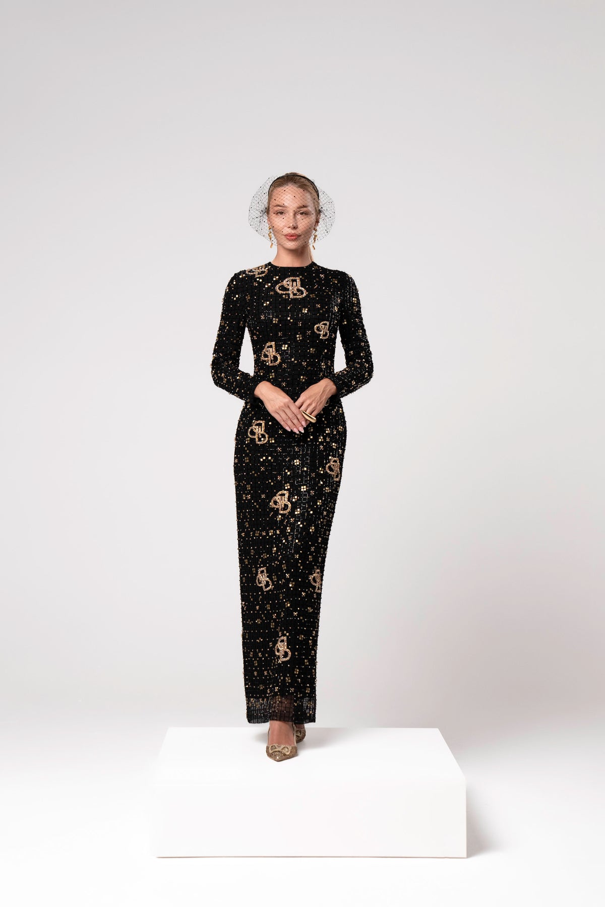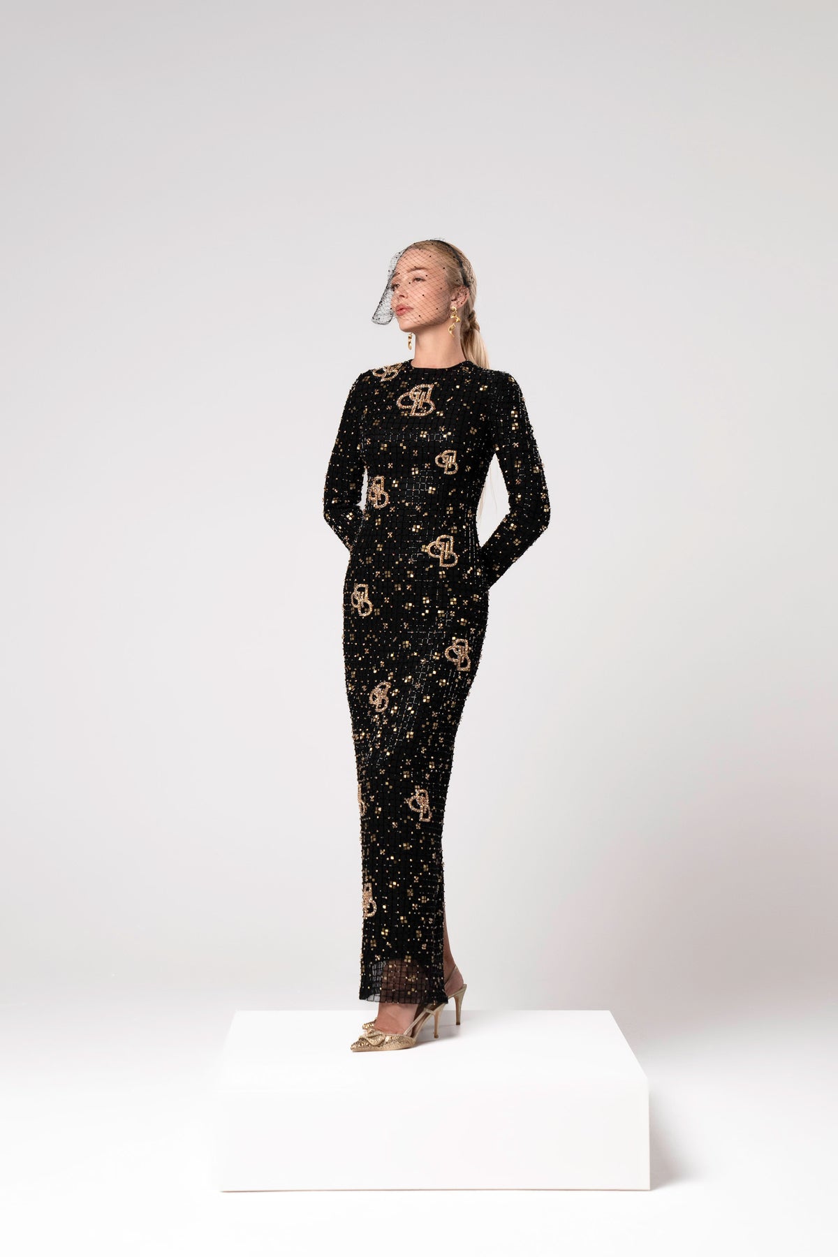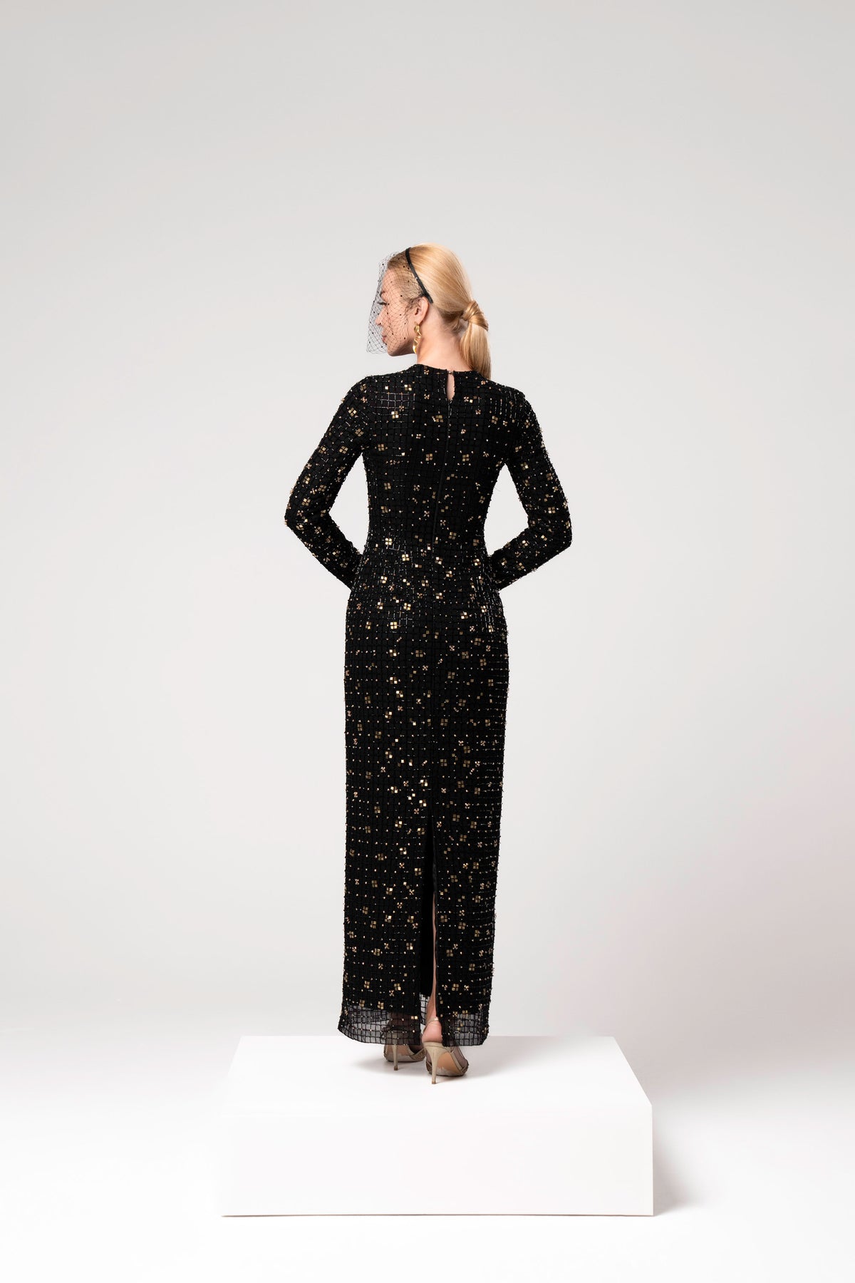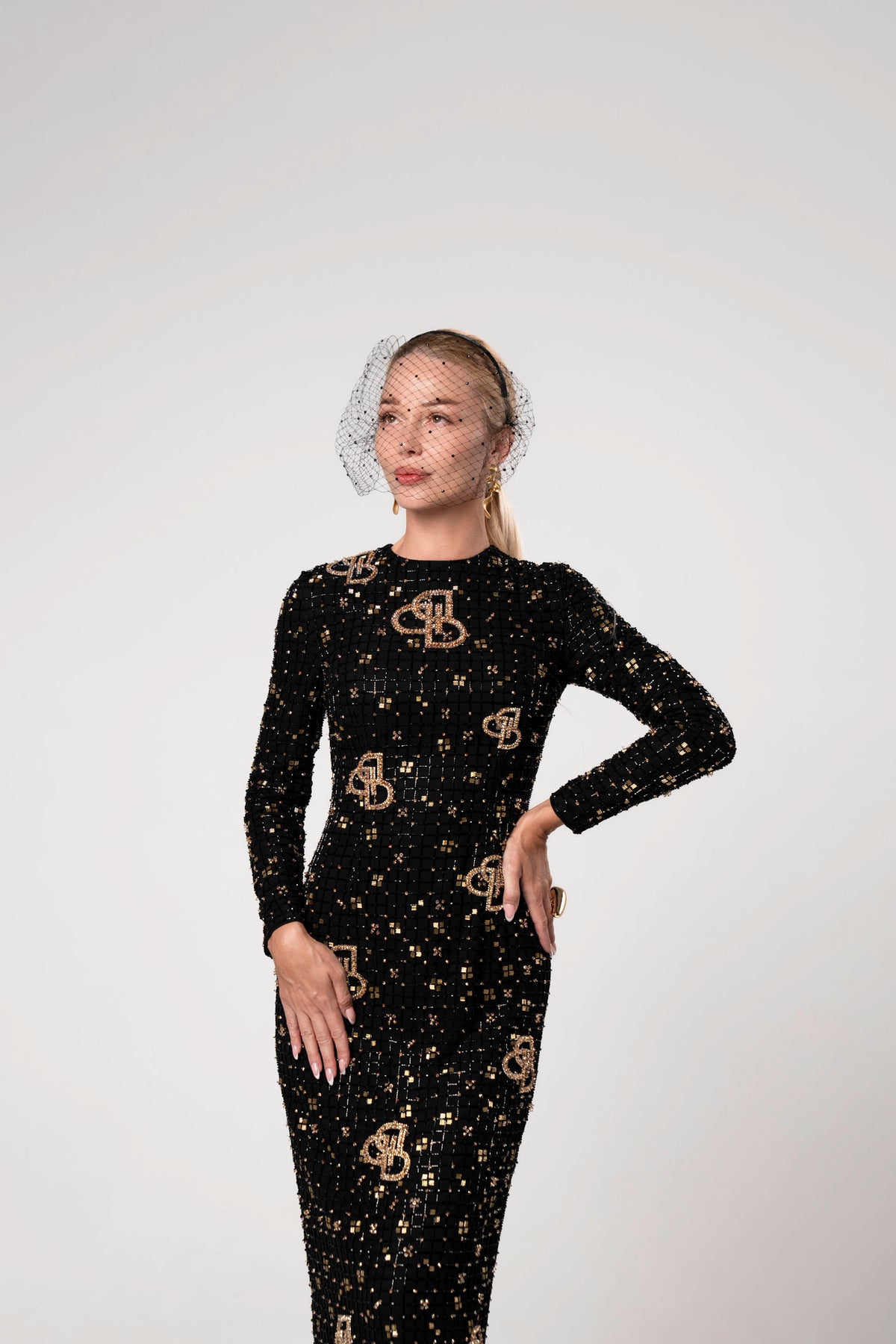 This dress is a masterpiece of light and shadow. Crafted with a constellation of black and gold embellishments, it evokes the elegance of a golden mosaic in motion. The sheer overlay glimmers with every glance, while the tailored silhouette speaks of confidence and refined femininty. VIONNA is for the woman who turns moments into memories — rare, radiant, and unforgettable.